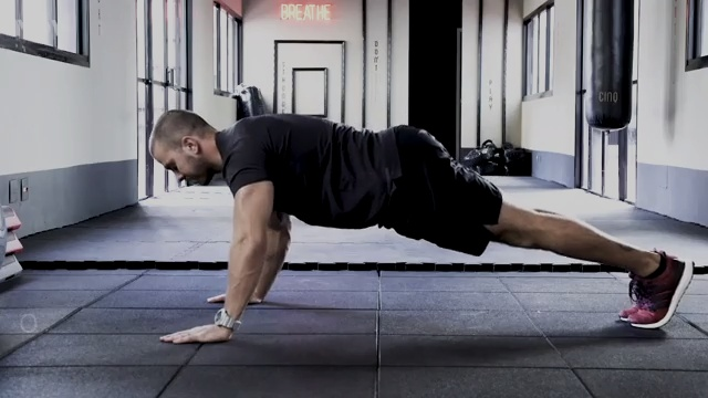 ✅ Empurre o corpo para cima, estendendo os braços.